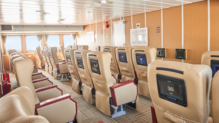 Tàu Phú Quốc Express 5 saoKhoang hành khách tàu Phú Quốc ExpressKhoang ghế ngồi VIP sang trọngCheck-in boong tàu ngoài trời