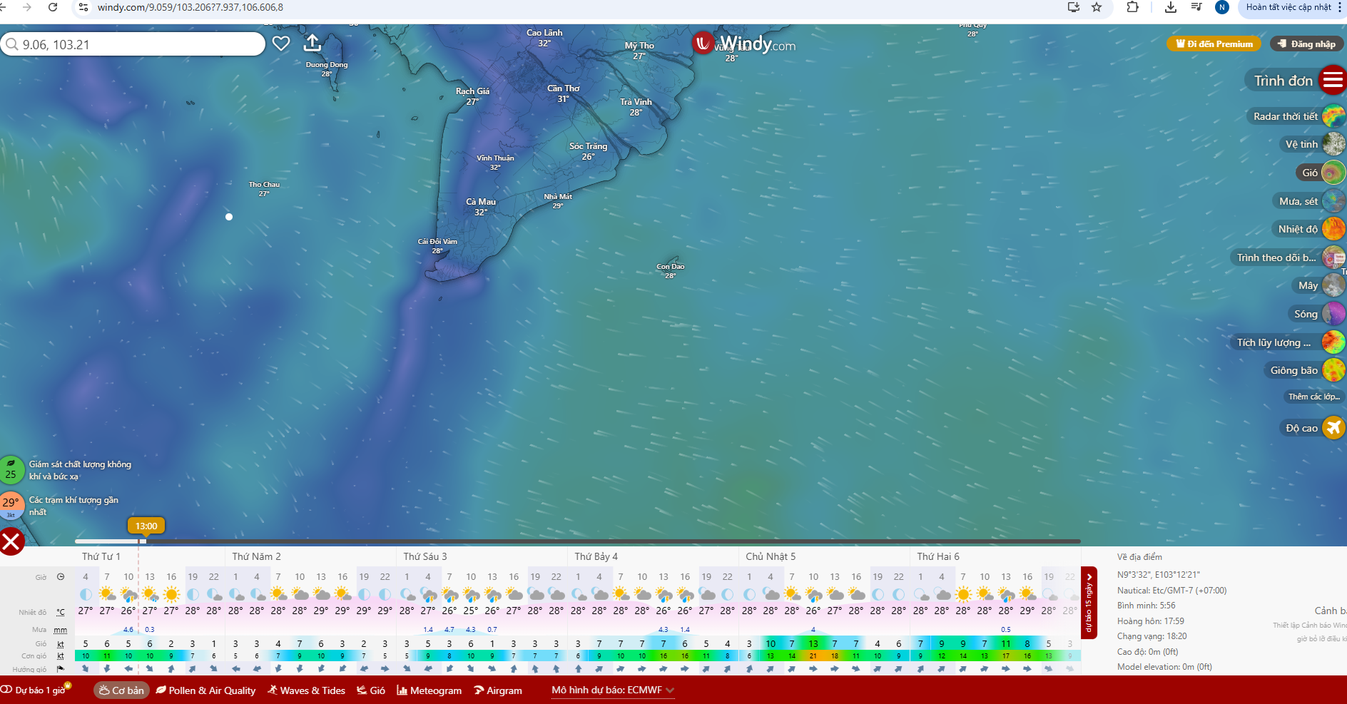 Để có chuyến du lịch Côn Đảo bằng tàu cao tốc trọn vẹn, hành khách nên xem dự báo thời tiết trước chuyến đi khoảng 5 - 7 ngày. Dễ dàng tra cứu thời tiết sớm tại https://www.windy.com/8.683/106.606?7.937,106.606,8