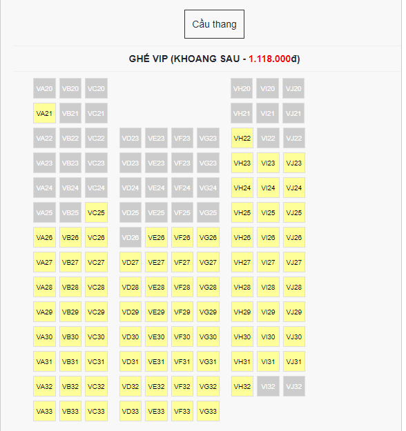 Ghế VIP: không gian thoải mái, ít chỗ ngồi hơn.